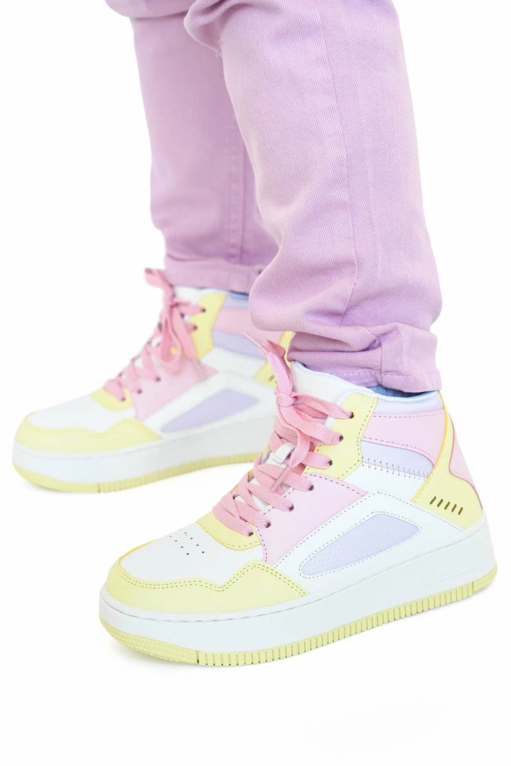 The raddest chunky high top sneakers in the perfect pastel color block!Â