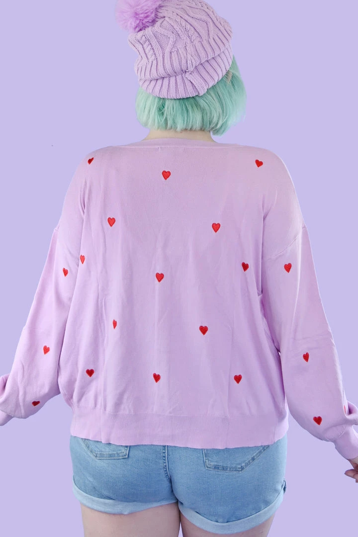 Cropped cardigan with dainty embroidered hearts all over.