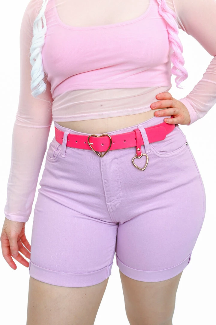High waisted biker length denim shorts. Slight stretch. Durable denim.