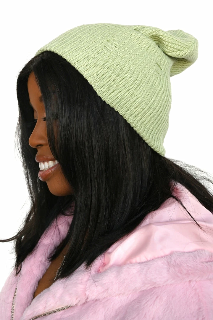 A winter wardrobe staple! Lightweight beanie in the perfect shade of mint.Â