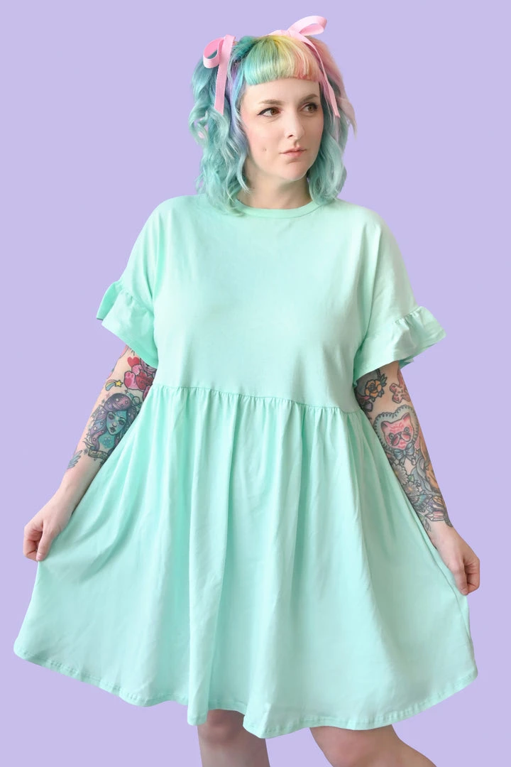 Made of a mid weight 100% cotton t-shirt fabric. Relaxed fit with ruffles on the sleeves.