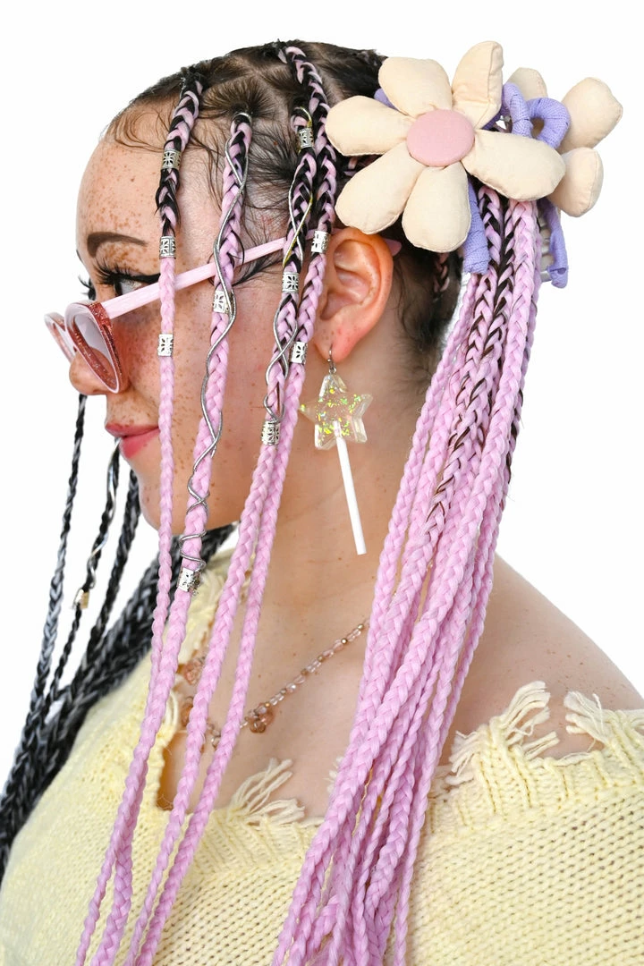 Set of 2 pastel pillow puffed flowers. In Jade/Pastel Yellow and Chartreuse/Orange!