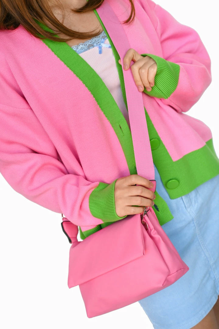 Matte faux leather body with an adjustable nylon shoulder strapÂ