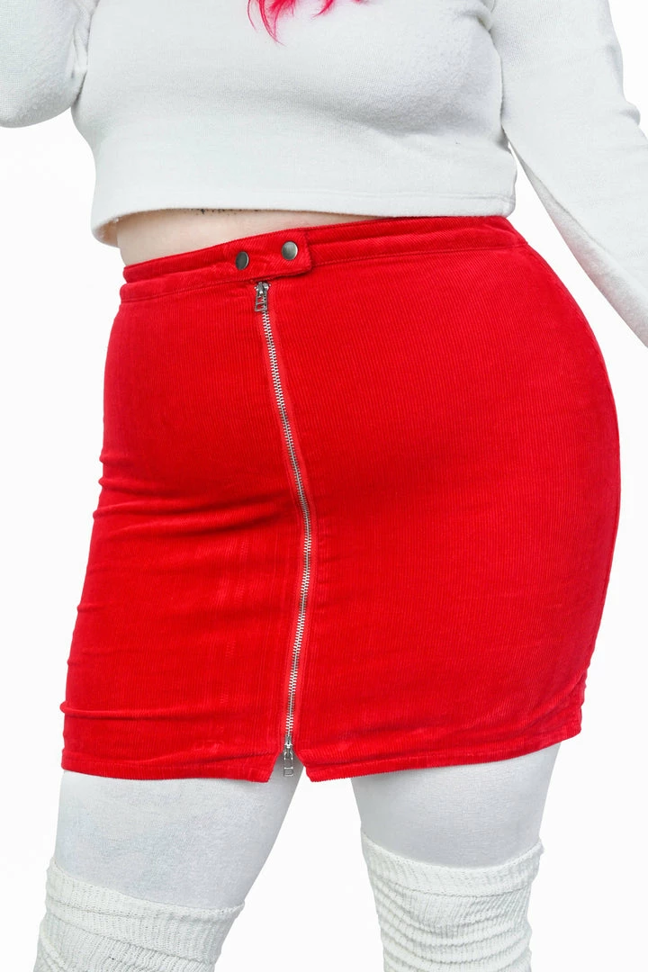 A classic zip up mini skirt made of soft corduroy with just enough stretch.