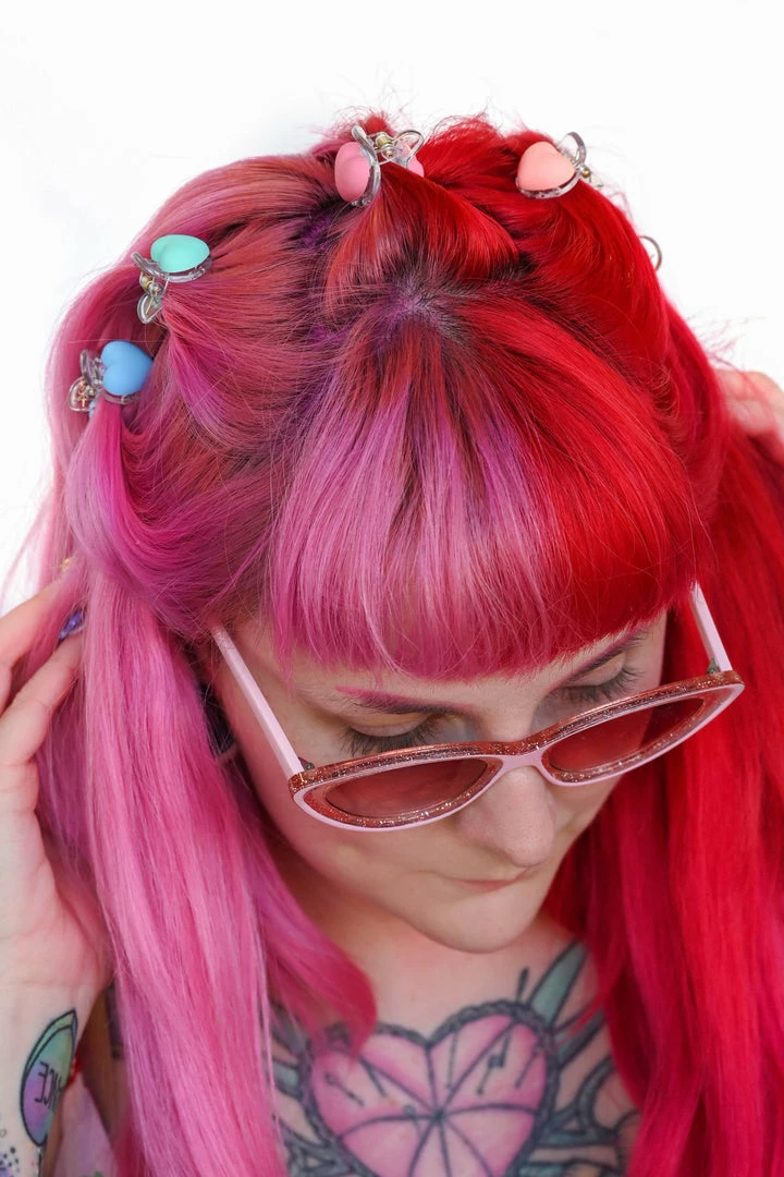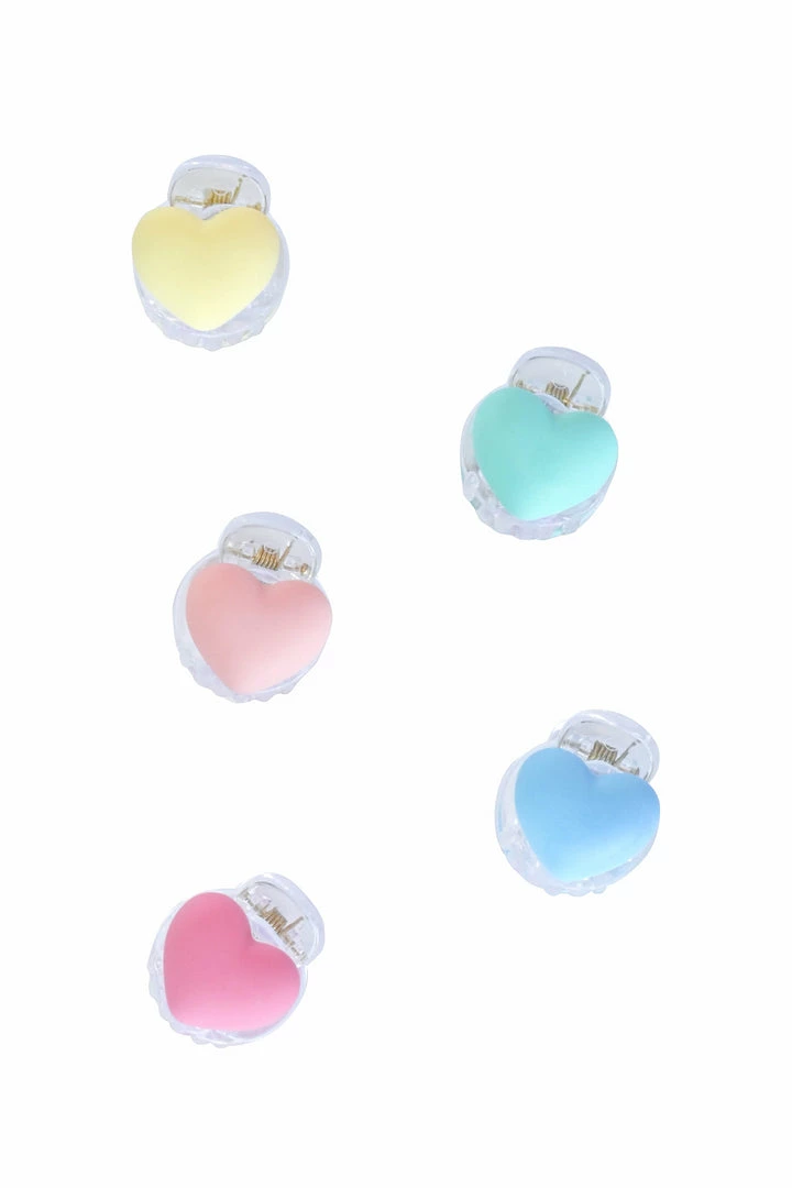Straight out of our 90’s childhood! Acrylic clips with pastel colored heart charms on each side.