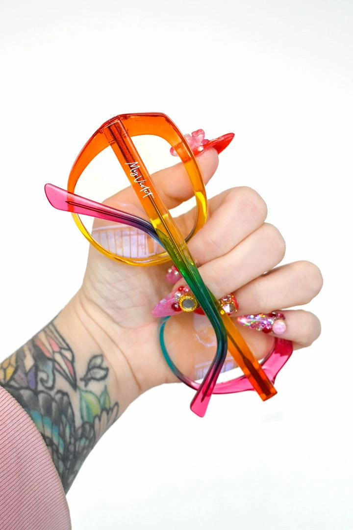 They say you’re never fully dressed without a rainbow on your face! The cutest rainbow glasses with clear lenses that are UV protected and block blue light!