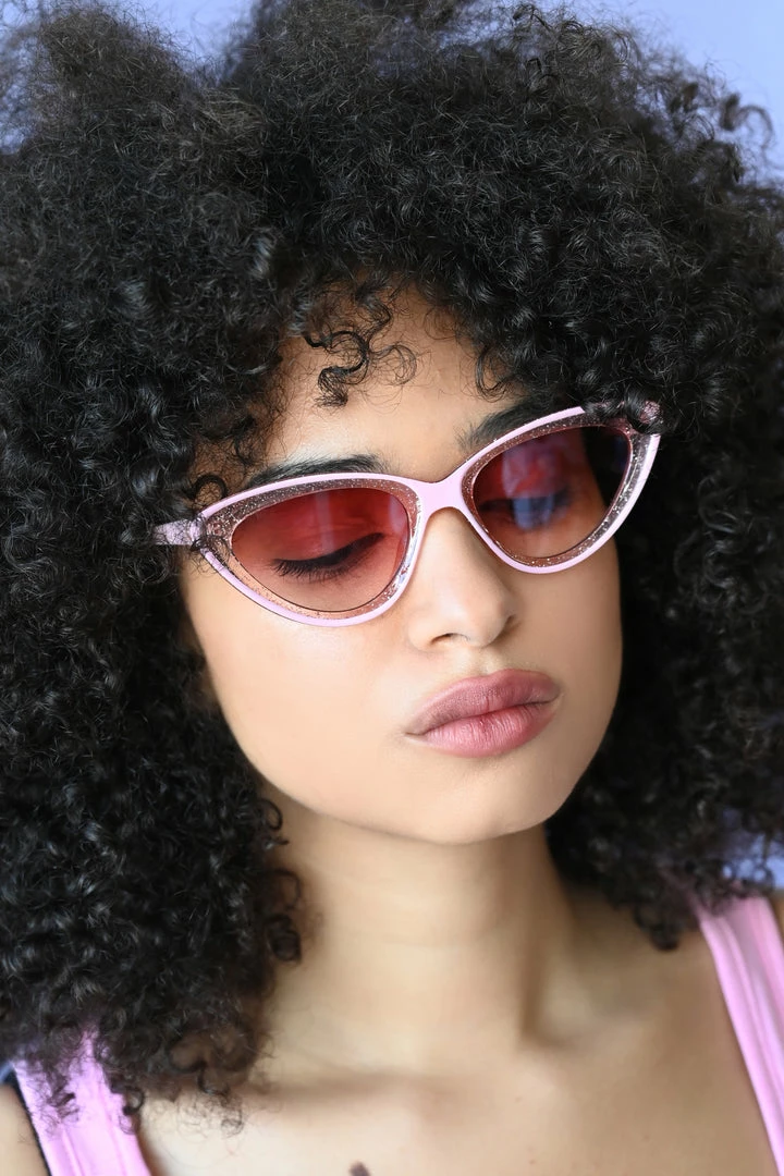 These cat eye retro shades are the cutest! Pink lenses are adorned with a solid pink and pink glitter frame